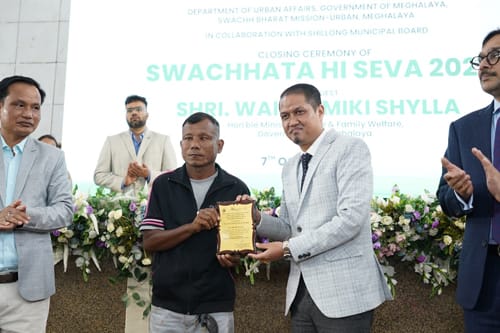 Ba la pynlong da ka tnat urban affairs bad ka Swachh Bharat Mission-Urban, ha ka jingïatreilang bad ka Shillong Municipal Board (SMB), ka Swachhata Hi Seva Campaign 2025, ka la pyni ba ka la leh kiba bun ki kam kiba thmu ban pynsngewthuh shaphang ka jingkhuid bad ban pynrung ha ka jingmut jong ki nongshong shnong ïa ka jingkitkhlieh halor kane ka bynta.