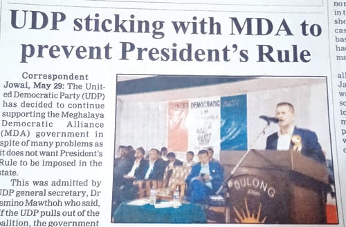 Balei ki tieng ïa ka President’s Rule – Khyrwit tyngeh u Dy CM ïa jingkynthoh ki heh UDP