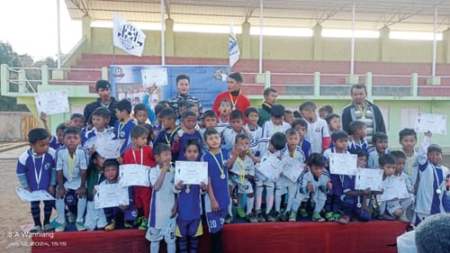 Shillong, Kyllalyngkot 14 : Ka Jongksha Grassroots Football Centre ha ka 12 tarik Kyllalyngkot 2024 ka la pynlong ïa ka jingpynïalehkai kynjatbol na ka bynta ki hep kiba rit ïa kaba la tip kum ka Winter Football Tournament 2024.