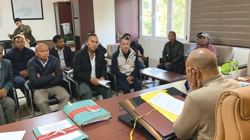 Nongpoh, K’Lyngkot 12: Ki Rangbah Shnong hapoh ka kynhun ka Synjuk ki Rangbah Shnong Ri-Bhoi District mynta ka sngi kila leit ban ïakynduh ïa u Abhilash Baranwal Deputy Commissioner ka Ri-Bhoi District ban ujor halor ka jingkyrduh um ki shnong watla bun ki shnong kila ioh ïaka skhim JJM bad ki pipe um kila poi haduh thliew iing hynrei khlem ka um kaba buh jingeh ïa bun ki paidbah nongshong shnong bad kumjuh ruh ban kyrpad sha ka sorkar ba ka dei ban pynlait noh mardor ïaka bai tiar jong ka skhim MNREGA kaba ri hadien ka sorkar pdeng hapoh ka jingïalam ka BJP kala pynkylla kyrteng ïa katei ka skhim sha ka VB-G RAM G Act 2025.