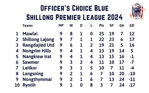 Kane kadei ka jingïakhun kaba khatduh jong ka first leg jong ka league bad ha ki 45 tylli ki jingïakhun ba ki klob ki la ïoh ban ïakhun mar khyndai sien. Ka Mawlai kaba la jop arsien ïa ka nam lahduh jong ka OC Blue SPL bad mynta ka dang ïakhun tyngeh ban khur ïa ka jingjop kaba lai sien, ka dei tang ma ka ka kynhun kaba khlem shah rem bad ka don 25 poiñ na ki 8 tylli ki jingjop bad ïakhaid shisien.