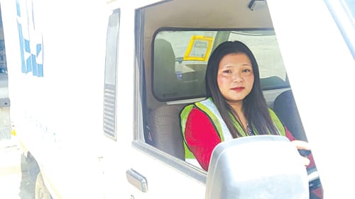 Shillong, Risaw, 07: Ka Kong Joycy Lyngdoh kaba la 35 snem ka rta na ka jylla Meghalaya ka la ïoh ïa ka nam kum ka draibar trok kynthei banyngkong eh ba ïa treilang bad ka company Amazon bad ka la pynkheiñ ïa ka jingong ba ki kynthei kim lah ban trei ïa ka kam kaba ki shynrang ki trei.