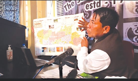 Shillong, Ïaiong 06 : U President ka HSPDP, Bah KP Pangniang ha ka sngi Balang u la ong ba ka sorkar jylla kadei ban phah dro biang da kawei ka map Meghalaya khnang ba ki jaka ba dang kajia pud kin donlang ha katei ka map.