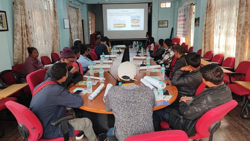 Ia katei ka prokram la pynlong ha Conference Hall jong ka DRDA hakaba la wan ban sngap bad shimbynta da ki nongïalam shnong na kylleng ki jaka jong ka dong Ri-Bhoi bala wan ban pynshai paidbah da u Subham Sanu bad ka Barisha Jyoti Baishya kiba dei ki Standard Promotion Consultant ka BIS haka jingdonlang ka kong Pdianghun Marbañiang District Program Manager DRDA, Bah S Marbañiang Addl. District Program Manager ka DRDA bad kiwei kiwei.