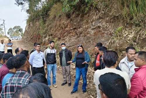 Khliehriat rymphang 2: Ka MLA jong ka Sutnga –Saipung ka kong Santa Mary Shylla ha ka jingsynran lang u Deputy Commissioner, East Jaiñtia Hills District, u Manish Kumar, IAS,, u Block Development Officer, Saipung C&RD Block, Dr R. Pyrtuh, Executive Engineer, (PWD) Roads, Khliehriat Division, u bah G. Langstang, u Engineer, District Mineral Foundation Trust, bah Dapmain Nongtdu, u District Project Manager, District Project Management Unit (MBMA), East Jaiñtia Hills District, ka kong Pynhunlang War lem bad kiwei kiwei ki heh sorkar mynta ka sngi ka la pynlong ïa ka jingjurip ïa ka jingpyntrei ïa ki project bapher bapher ba la pyntrei ha ki shnong bapher bapher kiba hap hapoh Saipung C& RD Block.
