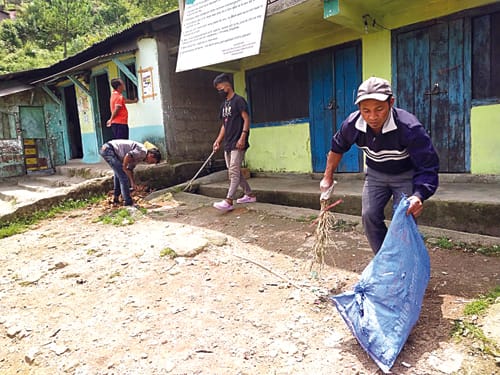 Mawkyrwat, Jymmang, 08: Ka Seng Samla Shnong Umjaraiñ ha ryngkat ka jingïatreilang bad ka Synjuk ki Seng Samla Shnong jong ka South West Khasi Hills District, ha ka 07/05/2022 ki la pynlong ïa ka Awareness Programme-cum-Cleaning Drive bad ha kane ka sngi la pynïaid ïa ka jingïalang ba lyngkot da u President ka Seng Samla Shnong Umjaraiñ, u samla K. Lyngdoh.