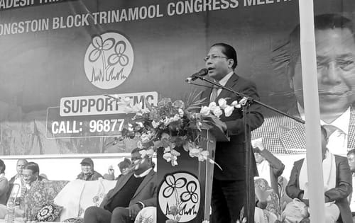 Nongstoiñ, Nohprah, 10: Ha ka jingïalang paidbah ba la pynlong da ka seng saiñ pyrthei kaba dang thymmai ha ka thaiñ bad ha ka jylla hi baroh kawei ka All India Trinamool Congress ha madan shnong Tiehsaw Nongstoiñ West Khasi Hills District ha ka sngi palei, u myntri rangbah barim ka jylla Meghalaya u Dr.Mukul Sangma u la kynthah tyngeh ïa ka sorkar MDA hapoh ka jingïalam jong ka seng NPP, da kaba u la ong, “Nga la kyndit haba nga ïoh sngew ïa ka kyntien High Level haba nga tur sha Rilum Jaiñtia, sha Ribhoi bad haba mynta nga wan sha thaiñ West Khasi hills ruh nga ïoh sngew ïa kajuh ka kyntien. Hynrei nga ong pat ka bor kam shong ha ki High Level, hynrei ha phi u paidbah u ba la jied ïa ki, kumta ka la dei ka por ban pynduh noh ïa kita kiei kiei baroh”.