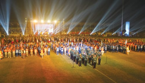 Tura, Kyllalyngkot 15 : Ka janmiet ban sah kynmaw pateng la pateng hadien ba ka President jong ka ri, ka Droupadi Murmu ka la plie ïa ka pyrda ïa ka lympung ïalehkai 5th Meghalaya games 2024 ha PA Sangma Stadium kaba ha Tura, West Garo Hills District.