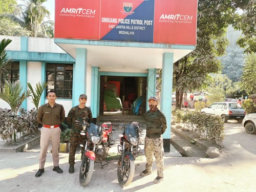 Khliehriat, K’lyngkot, 11: Ki Pulit jong ka Umkiang Patrolling Post, East Jaiñtia Hills District ha ka sngi Saitjaiñ ki la kurup bad rah noh sha thanat ïa ki ar tylli ki motor bike ki bym don trai bad kiba la shu iehnoh ha kawei ka jaka khlaw ha ka shnong Wahkoh.