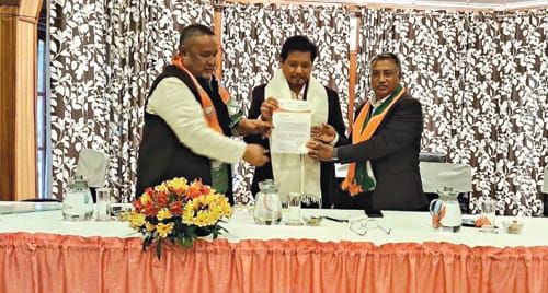 Shillong, Lber 30 : U National President ka NPP ba dei ruh u Myntri Rangbah ka jylla, Conrad K Sangma ha ka sngi Saitjaiñ u la lum ïa ka jingïalang bad ki heh nongïalam ka BJP ha nongbah Shillong na ka bynta ban ïa kren halor ka elekshon MP khnang ba ki kyrtong jong ka party kin ïoh ïa ka jingjop na Shillong bad kumjuh na Tura Parliamentary seat.