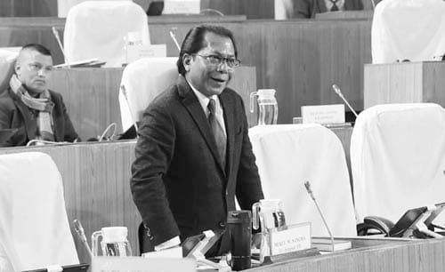 Shillong, Rymphang 19 : U Myntri Rangbah barim ka Jylla Dr Mukul Sangma mynta ka Lah Sngi U Blei ula kyntu ïa ka Sorkar MDA ba kan sangeh noh na kaba leh politik ïa ka aiñ Meghalaya Residents Safety and Security Act (MRSSA), kaba dei ka aiñ ba la wanrah kyrpang da ka jingthmu ban tehlakam ïa ka jingwan rung kyrthep ki bar jylla bad poi wir shapoh ka Jylla.