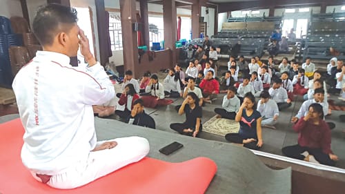 Na ka liang u P. Toi, President Art of Living Jaiñtia Hills Unit uba long kum u nongai jinghikai (instructor) ula ai mynsiem ïa baroh kiba la wan ban ïashim bynta, da kaba pynkymmaw ruh shaphang ka nongrim jong ka Yoga bad ki rukom kiba dei ban leh manla ka sngi khnang ban ïoh ïa ka bor met kaba koit ba khiah naduh ka bor pyrkhat bad ka mynsiem kumjuh.