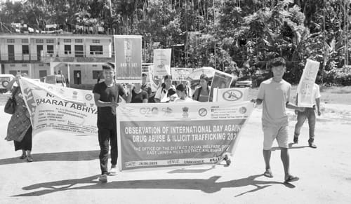Khliehriat jylliew 26: Ka ophis jong ka District Social Welfare East Jaiñtia Hills District, mynta ka sngi ka la pynlong ïa ka prokram ba kyrpang kaba dei ka sngi pyrshah drok lane ka International Day against Drug Abuse and Illicit Trafficking, ïa ka prokram la pynlong ha Community Hall ha Umkiang.