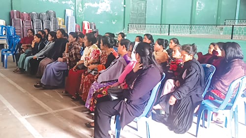 Jowai, Jylliew 12: Ki nongshet ja sngi hapoh ka lama jong ka ‘All Jaiñtia Mid Day Meal Worker Union’ ha kane ka sngi Saitjait kila lum biang ïa ka jingïalang ha Dorbar Hall jong ka Dulong Jowai, ban ïakren ha kaba ïadei bad ba jingeh kiba ïa kynduh naba ka sorkar haduh mynta kam pat shem la sngap ïa ka jingdawa.