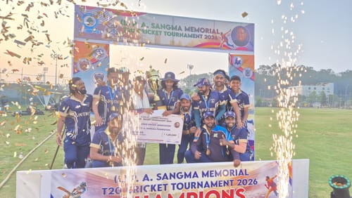 SHILLONG, ïaïong 13: Ka kynhun ïalehkai jong ka Sputnik Cricket Club ka la kylla long ka lahduh ba nyngkong eh jong ka lympung 1st Late P.A.Sangma Memorial T20 Cricket Tournament 2026 hadien ba ka la pynliem noh ïa ka Royal Cricket Club da 38 ron ha ka phainal hynne ka sngi Nyngkong (13 tarik ïaïong) ha madan kriket ha Polo.
