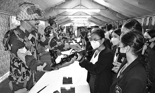 Shillong, Nailur, 02: Ka Border Security Force Meghalaya Frontier mynta ka sngi ka la rakhe ïa ka jingngeit jong ka Azadi Ka Amrit Mahotsav ha ka “run up to Teachers’ Day” bad leit jngoh ïa 65 tylli ki skul ha ki jaka khappud bad ki jaka ba marjan bad kine bad pynlong ïa ki prokram bapher bapher.