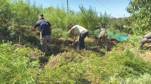 Shillong, Risaw, 21: Ki Pulit ka East Khasi Hills District da ka jingïatreilang bad ki bor synshar district, ka tnat Khlaw, Excise bad ka Anti-Narcotics Task Force (ANTF) ha ka sngi Baar ki la pynjulor palat 10 ton ïa ki dieng Ganja ba la rep ha ha ka jingïar ka jaka kaba heh 5 hektar ha ki kyrpong iing ha ka shnong Laitlulong, Sohiong.