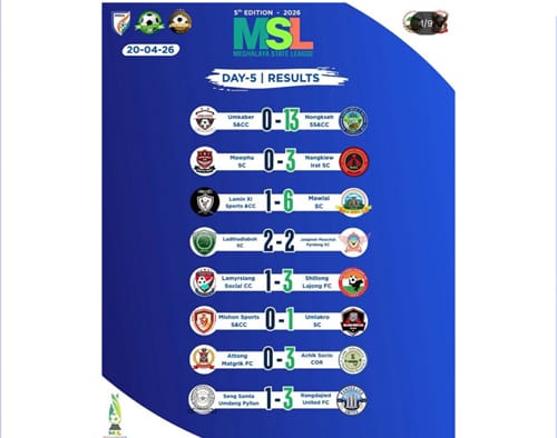 MSL 5: Pynjemkhnap ka Nongkseh haduh 13 kol ïa ka Umkaber, mad jingjop ka Mawlai, SLFC bad ka RUFC