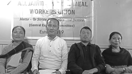 Jowai, Nailur 06: Ki nongïalam jong ka All Jaiñtia Mid Day Meal Worker Union Jowai (AJMDM-WU) West Jaiñtia Hills District mynta ka sngi haba ïakren sha ki lad pathai khubor ha nongbha Jowai ha ryngkat ka jingïadonlang naduh u Adviser ka seng ma Khroo L. Pariat, u President ma Jerry Suting lem bad ki dkhot ka seng, kila buh ka jingkyntu ïa ki 60 ngut ki MLA jong ka jylla Meghalaya ba kin ïakren ïa kane ka jingeh jong ki Nongshet ja sngi ha ki skul ha kane ka Dorbar (Session) ka ban sa long haka 9 tarik mynta u bnai Nailur.