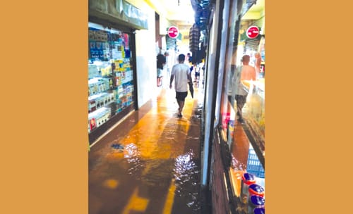 Nalor ka jingshlei um ba la tap ïa ka surok ïaid paidbah (Service Road), ka um ka la rung ruh wat sha ki dukan kaba la ktah ïa ki nongshong dukan ha sor Nongpoh.