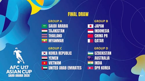 NEW DELHI, Rymphang 12: Ka India ka la shah kynthup lang ha kajuh ka Group D ryngkat bad ka Uzbekistan, Australia bad ka DPR Korea ha ka lympung AFC U17 Asian Cup 2026 ha Saudi Arabia hadien ba la pyndep ïa ka jingpynïakap kynhun ba khatduh (Final Draw) ba la pynlong ha AFC House ha Kuala Lumpur, Malaysia, ha ka sngi Palei, 12 tarik Rymphang, 2026. Kane ka lympung kan sdang naduh 05 tarik haduh 22 tarik Jymmang.
