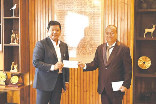 Shillong, Naitung 09: Ka Star Cement kawei na ki kompeni dewbilat ba paw jong ka thaiñ dang shen ka la noh synñiang haduh T. 25 lak sha ka Chief Minister’s Relief Fund, Meghalaya naka bynta ban ïarap ïa ki lanot shlei um kiba la shah ktah ha ki bynta bapher bapher jong ka jylla.