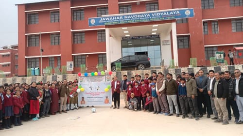 Mawkyrwat, Rymphang 14 : Ka Jawahar Navodaya Vidyalaya (JNV), South West Khasi Hills District lyngba ka tnad pule puthi jong ka sorkar India mynta ka sngi ka 13 tarik u Rymphang 2026 ka la ïoh ban pynlong ïa ka prokram ba kyrpang ba la tip kum ka ‘Football to School (F4S)’ hapoh ka Hall jong ka JNV, South West Khasi Hills District ha kaba u Bah Renikton Lyngdoh Tongkhar uba dei u MLA ka Mawkyrwat Constituency kum u kongsan.