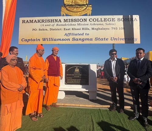 Sohra, Naiwieng 19 : U Myntri Rangbah ka jylla u Conrad K. Sangma ha ka sngi Balang u la plie paidbah ïa ka Ramakrishna Mission College, Sohra, kum ka jingseng ïa ka Ramakrishna Mission College kaba nyngkong eh ha ka thain shatei lammihngi.