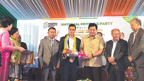 Shillong, Nailur 15: Ka NPP ha ka sngi Palei ka la ïoh ban pdiang Sngewbha ïa u Chairman ka JHADC u Dr Sankey Shangpung uba dei u MDC na Bataw Lakadong Constituency uba la jop na ka seng UDP bad ki nongïalam ka UDP na East Jaintia Hills bad ïa u Bah Sherborlang L Mawlong MDC ka Nongspung-Sohiong uba la jop na ka seng HSPDP. Ïa kine ki MDC kiba pynïasoh la pdiang sngewbha da u National President ka NPP uba dei ruh u Myntri Rangbah ka jylla u Conrad Sangma, u National Vice President u bah Prestone Tyngsong ha ka jingïadonlang u Dr WR Kharlukhi bad kiwei de ki nongïalam ka NPP.