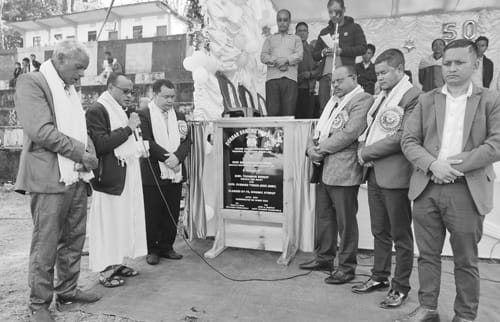 Jowai, Nohprah 11 : Ka Dorbar Shnong Namdong-B West Jaiñtia Hills hynnin ka sngi saitjaiñ kala rakhee ïaka jingdap dap 50 snem ka shnong lane ka Golden Jubilee Celebration, ba la wan ban plie pyrda da u MLA ka thaiñ uba dei ruh u Myntri ka Sorkar jylla u ma Sniawbhalang Dhar, haka jingdon lang u ma Thombor Shiwat CEM ka JHADC, ma Evening Tron MDC JHADC, U Rev. Fr Dominic Kympat nalor kiwei ki ‘Riew Rangbah ka Thaiñ.