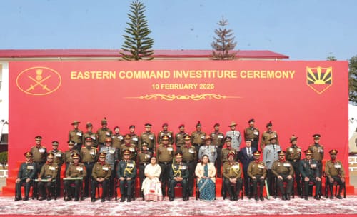 Shillong, Rymphang 10: Kum shi bynta ban pynshlur bad ai mynsiem ïa ki nongïada ïa ka ri, ki shipai kiba don sha kane ka thaiñ shatei lammihngi ki la pynlong ïa ka jingsam khusnam bad pynkup burom kaba kyrpang da ki kyrdan bapher bapher sha ki shipai ophisar da ka prokram kaba la khot ka Eastern Command Investiture Ceremony kaba la long ha ka sngi baar ha jaka ba ju ai jinghikai ïa ki shipai ka Eastern Command kaba don ha Umroi Military Station, Ri Bhoi District, Meghalaya.