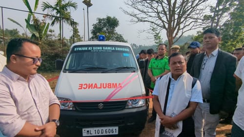 Ïa katei ka Ambulance la mang pisa lyngba ka Chief Minister’s Special Development Fund (CMSDF) ban shakri sha ki paidbah ka thaiñ Ri-Bhoi Sepngi. Ha kane ka sngi la sakhi ruh da ka jingdonlang u Dr. P Hajong BDO ka Jirang C&RD Block, ki nongïalam ka Synjuk ki Seng Samla Shnong, Ri-Bhoi Sepngi Zone bad kiwei kiwei ki riew rangbah. Lyngba katei ka sngi, ki la don kumba 119 tam ki longïing kiba la ïohpdiang ïa kitei ki tin sopïing, kiba kham duna ka ïoh ka kot bad khamtam eh na bynta jong kito ki longïing kiba ngat ha ka apot pluh ïing bad nalor ki longïing ba duk naka la aiti ruh sha ki ïingmane bad ïing Dorbar, ba la mang lyngba ka skim Special Rural Work Program (SRWP).