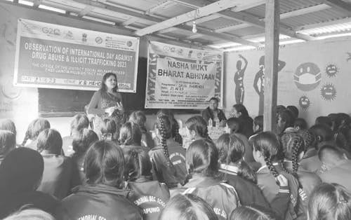 Kane ka jingpynlong prkram ka long ruh kum ka jingrakhe ïa ka sngi kyrpang ba pyrshah ïa u drok ka ‘International Day Against Drugs bad ruh kum shibynta jong ka Nasha Mukt Bharat Abhiyaan, ha kane ka prokram la ïa don ryngkat lang ka District Social Welfare Officer East Jaiñtia Hills District, ka kong R.Pasah, u Head Master jong ka skul K.B.Memorial Higher Secondary School, u bah Heipor Bang, ki khynnah skul bad kiwei kiwei ki riew rangbah.