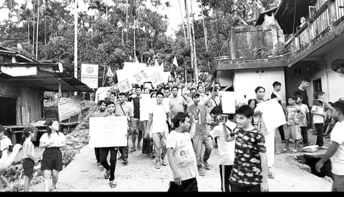 Ki paidbah jong ka shnong Tongseng Narpuh, kynthei bad shynrang, naduh ki tymmen, ki rangbah, ki khynnah, ki samla lem bad ki dkhot ka KSU bad EJNC, ki la rah ïa ki placard, kiba la thoh pyrshah ïa ki kam bymman jong ki nongpyniap briew, kiba la dawa na ki bor ka aiñ ban phasi , ban set patok shi jingim, ki la rah ruh ïa ki lama ïong kum ka dak ka jingpyrshah ïa ki kam runar u Ramesh Dkhar, ki la pyrta jam ïa ki jingdawa jong ki bad ka placard ba la rah da ka kong Mela Dkhar kaba dei ka kmie jong u runar, u Ramesh Dkhar ka thoh “Set Patok shi jingim ïa ki nongpyniap briew”