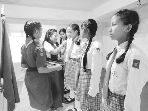 Jowai, Jylliew 10 : Ka Little Angels Secondary School, Jowai ha kane ka 9 tarik u Jylliew hapoh ka jingpynïaid jong ka Doly Lamare, Guide Captain kila pynlong ïa ka jingpynrung dkhot ‘Enrolment & Investiture Ceremony’ na ka bynta ki khynnah skul kiba kwah ban long kum ki Scouts-Guides.