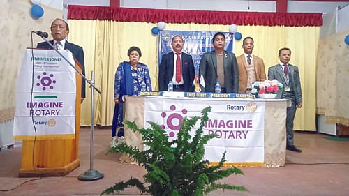 Kane ka jingïalang ba kyrpang jong ka seng la tip kum ka ‘27th Installation Ceremony’ ba la wan ban ïadonlang da u Rtn. Vincent H. Pala uba long ruh u M.P ka Shillong Parliamentary, ïa ka jingïalang la pynïaid da u Rtn. Montri Passah, President barim, katba ha ka bynta kaba ar la pynïaid da u Rtn. Samehi Laloo, President ba thymmai ka Rotary Club Jowai.