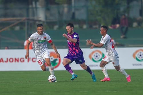Kalinga Stadium, Kyllalyngkot 10: Ka kynhun ïalehkai jong ka Shillong Lajong ka la mad ïa ka namrem hakhmat ka Kerala Blasters FC da 3-1 ha ka jingïakhun ba nyngkong jong ka ha ka Kalinga Super Cup ba la long hynne ka Sngi ha madan Kalinga Stadium Pitch 1, Bhubaneswar.