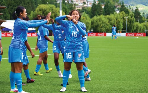 Thimpu, Nailar 22: Ka kynhun ki thei-ïalehkai U17 jong ka India ka la wanrah ïa ka jingïalehkai kaba khlaiñ bad kaba kyrpang ban ïoh ïa ka jingjop kaba ar sien lynter ha ka lympung jong ka SAFF U17 Women’s Championship 2025 da kaba pynliem ïa ka Bangladesh da 2-0 ha Changlimithang Stadium ha ka sngi Thohdieng.