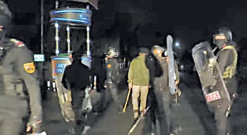 Shillong, Naiwieng 24: Khyndiat por hadien ba ka la don ka jingpyrshang ban wiang ding ïa ka Kali ba kit ïa ki Pulit bad kumjuh ruh ka jingsiat tear Gas ïa ki dkhot Sengbhalang ba pynlong jingïakhih namar ka jingjia ha Mukroh, la ïohi ba ka sorkar ka la sei madan da ki spah ngut ki Pulit SOT kiba la kieng atiar bad pynbiang bha ki tiar ïaleh bad ki tiar jingïada.