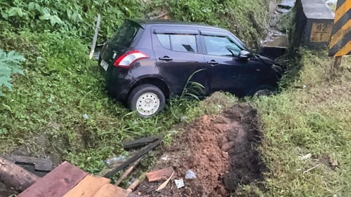 Nongpoh, Nailur 30: Kawei ka kali Maruti Swift kaba don ïa u number ML 05 P 1771 ba la shong ruh da 2 ngut ki briew bym pat lah ban ithuh kyrteng, ka la hap syndon sha nala harud surok bah National Highway 6 haka shnong Umsamlem ha Ri-Bhoi District.
