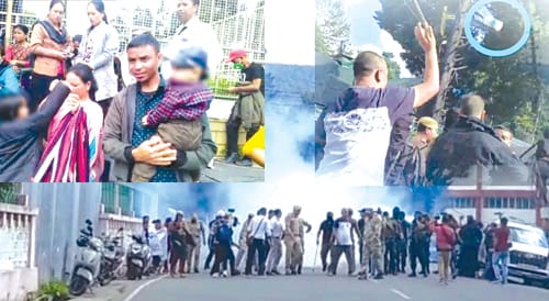 Shillong, Risaw 06: Ka jingïakhih ba jai jai ki Nonghikai Kontrak kaba la neh ka jan shi bnai ha u Mot Kiang Nangbah, haba ki Pulit ki la pyndonkam da ka bor bad siat ruh da ki bomb tear gas lane ki lyer pynsat khmat ïa ki nonghikai kiba la tur sha Secretariat ban dawa ïa ka hok jong ki.