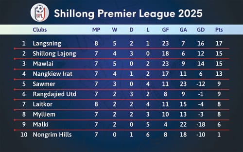 Ka jingjop ka la pynlong ïa ka Langsning ban lamkhmat ha ka jingïabeh ban ïaknieh ïa ka nam lahduh ha ka SPL 2025; mynta ka la ïoh ban khur 17 poiñ, da kaba tam 2 poiñ ïa ka Shillong Lajong bad ka Mawlai, hynrei kine ki ar tylli ki kynhun ki dang don kawei ka jingïalehkai ha kti. Katba ka Laitkor, ka dang sah ha ka kyrdan ba hynñiew, bad ka ïaryngkat bad ka Mylliem da 8 poiñ.