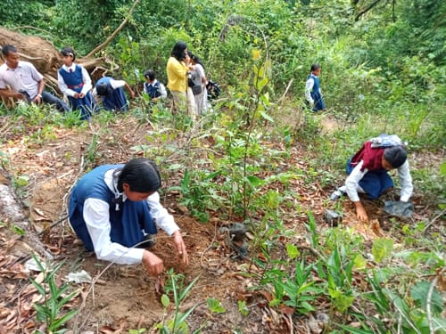 Jowai, Jylliew 06: Ka seng Khynroo Khyllood Committee (KKC) jong ka Seiñraij Jowai hynnin ka sngi kala pynlong ïa ka prokram ai jingpynshai ïa ki khynnah skul halor ka phang “Beat Plastic Pollution with Special reference the Impact of Jowai Town” bad kala pynlong ruh ka jingthung dieng hapoh ka khlaw kyntang kaba la tip ka Khloo Langdoh ba don ha nongbah Jowai.