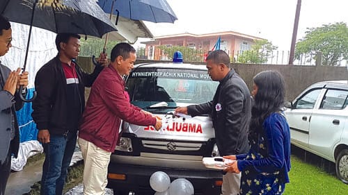 Mawkyrwat, Jylliew 03: U bah Renikton Lyngdoh Tongkhar, MLA ka Mawkyrwat Constituency mynta ka sngi u la ïoh ban pyllait paidbah ïa ka kali kit nongpang ne Ambulance jong ka Hynniewtrep Achiks’ National Movement (HANM) Mawlangwir Unit ha kaba la pynlong ïa ka jingïalang ha phyllaw jong ka ophis treikam jong ka seng HANM ha Shnong Mawlangwir, South West Khasi Hills District.