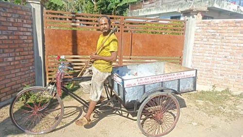 Haba trei ïa kane kam ban tam ne lum kyrpang ïa ki bitor um, ki bitor kyiad ba ju bret pathar da ki riew bym don jingkitkhklieh ïa ka mariang, u Bah Arjun Nongshli u la shna kyrpang syndon da ka Kali Thela (Tri-cycle) ban pyndonkam ha kaba lum ïa kitei ki bitor um bad ki bitor kyiad bad ïa kane ka Thela la ai sngewbha ruh da u MLA ka Nongpoh, u Bah Mayral Born Syiem ba un pyndonkam na ka bynta ka kam kaba u trei ha kaba lum ïa kitei ki bitor ha kylleng ki jaka paidbah ha ka thaiñ Nongpoh.
